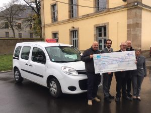 L’Association EPIDE Langres a reçu un chèque de 2000 € pour son projet d’équipement de double pédalier sur leur véhicule.